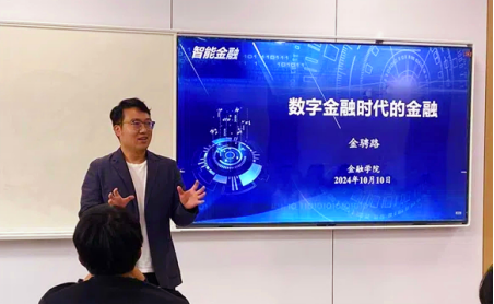 2024年10月10日,yl永利集团官网登录“名师导学·言近旨远”系列讲座第一期在公司楼101顺利举行。金融公司副经理金骋路以“数字金融时代的金融”为主题进行了精彩分享,智能金融强基班同学们参与了本次活动。
