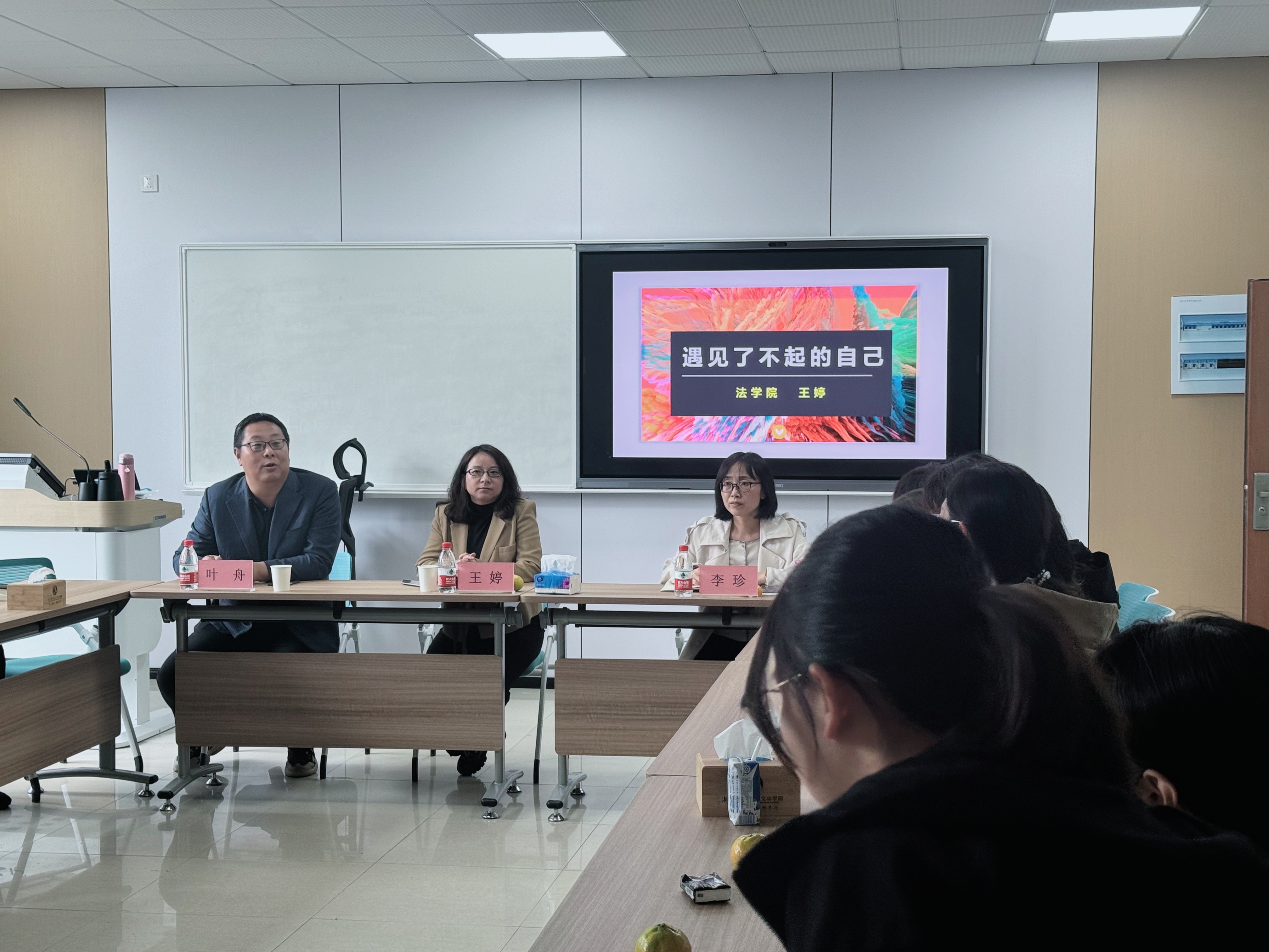 王婷老师围绕“遇见了不起的自己”为主题,从“自我”、“情绪”、“行为”三者的关系出发,引导同学们正视自我定位,认清行为导向,同时鼓励他们在深处逆境时,不断发掘自身潜力,以成就更好自己。